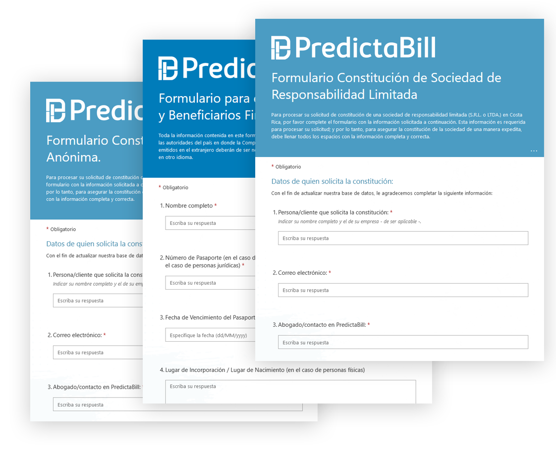 PredictaBill es un proveedor de servicios legales bajo esquemas alternativos de facturación, diseñado específicamente para atender las necesidades legales del día a día de sus clientes por un costo fijo. PredictaBill ofrece una combinación única del mejor talento humano y la mejor tecnología, para proveer soluciones legales innovadoras en tiempo y presupuesto definido.